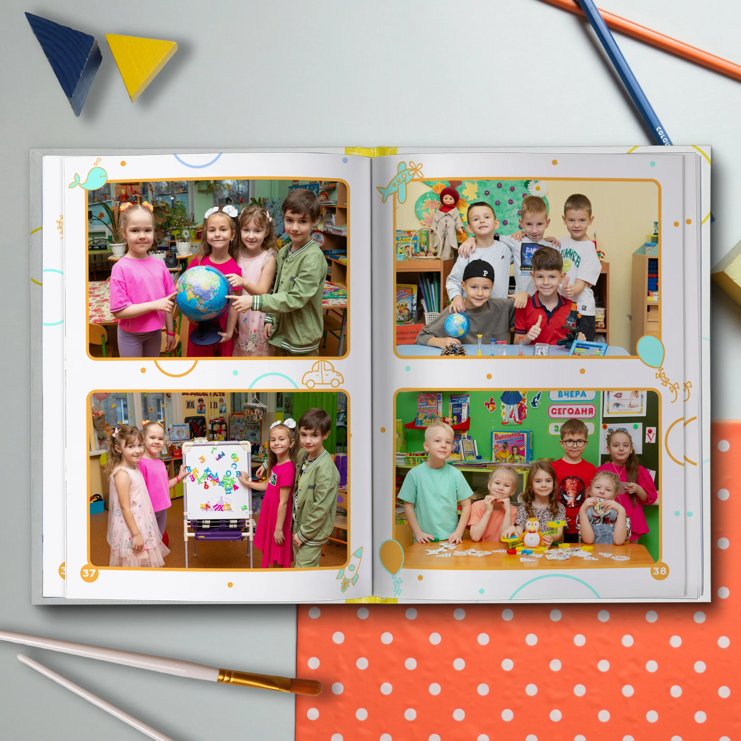 1ый разворот — виньетки педагогов и две общие фотографии